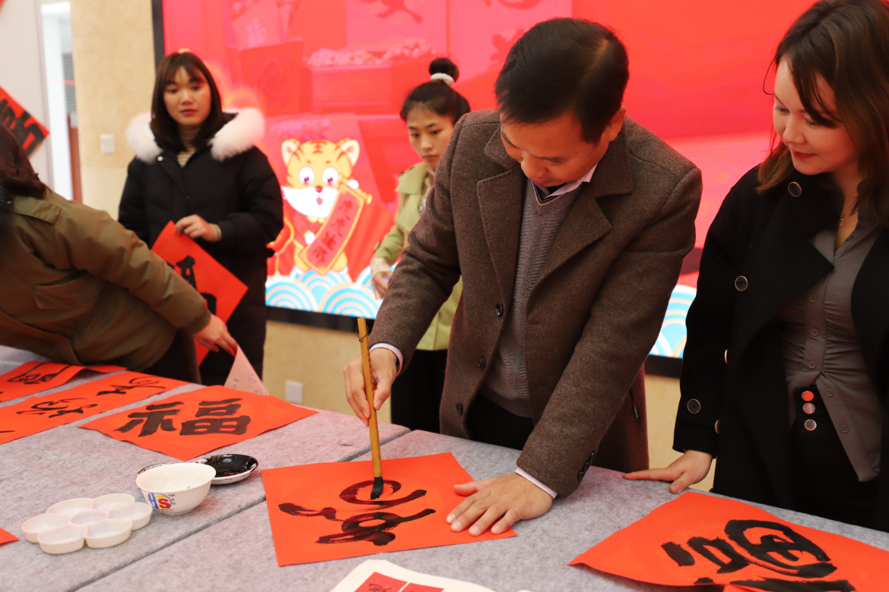 活動(dòng)現(xiàn)場(chǎng),到場(chǎng)職工群眾們翻閱春聯(lián)書譜內(nèi)容,市書法家協(xié)會(huì)的4位書法老師為職工群眾鋪紙研墨、即席揮毫。大家排著隊(duì)一邊欣賞一邊等著領(lǐng)春聯(lián),手捧著一幅幅寓意吉祥的春聯(lián),收獲了今年的“第一波”年貨,喜悅之情溢于言表。