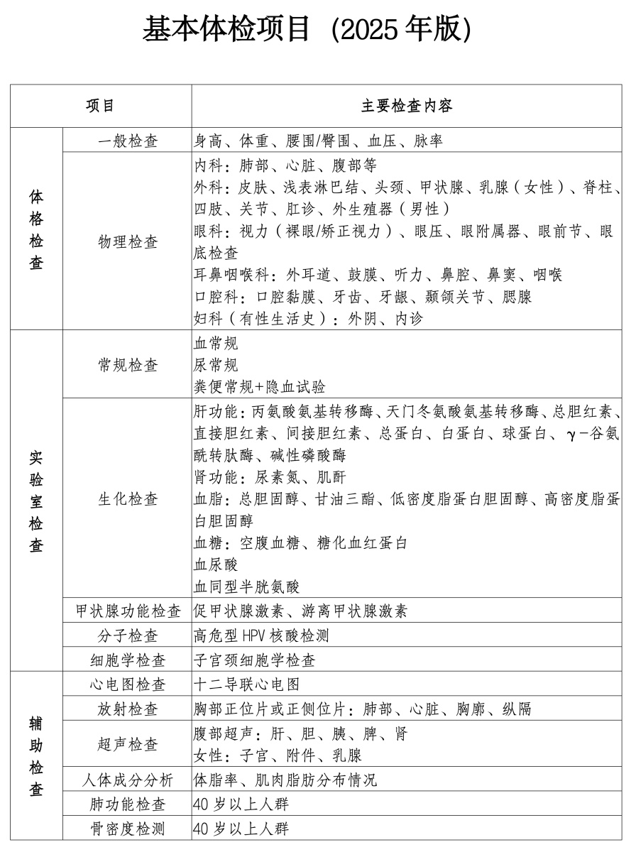 近期,國家衛(wèi)生健康委辦公廳印發(fā)《成人健康體檢項目推薦指引(2025年版)》,進一步規(guī)范健康體檢行為。
