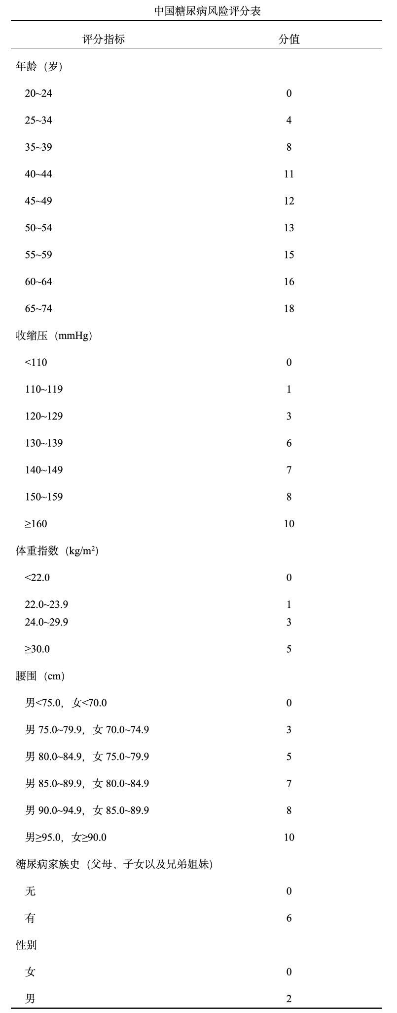(十七)中國糖尿病風(fēng)險評分總分≥25分。