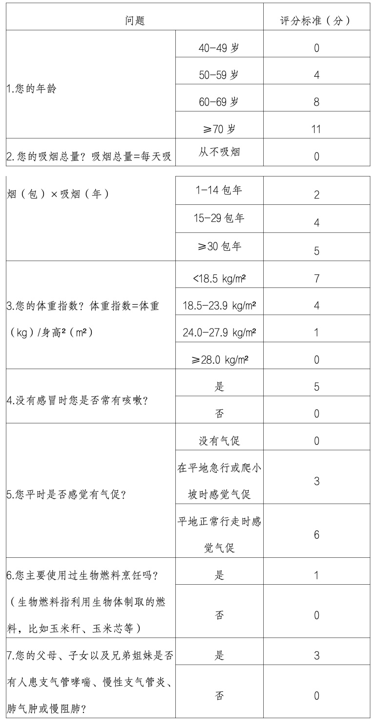 以下各項累計評分≥16分者,為COPD高風(fēng)險人群。