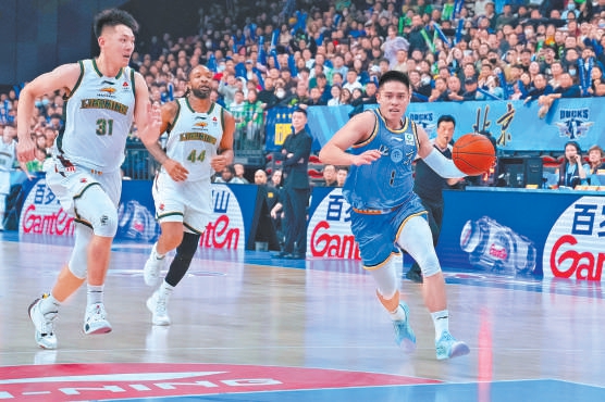 北京北汽隊球員陳盈駿(右)帶球突破。北京日報記者 劉平攝