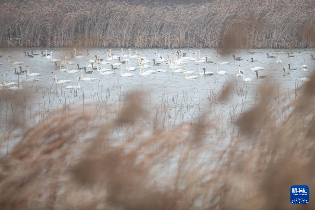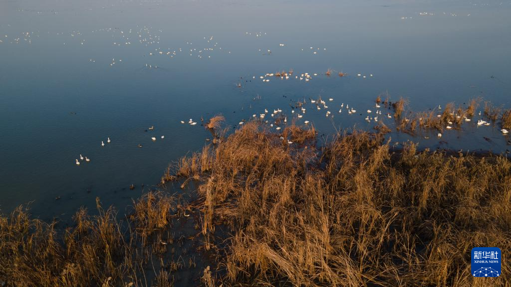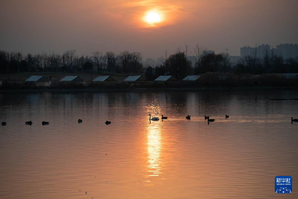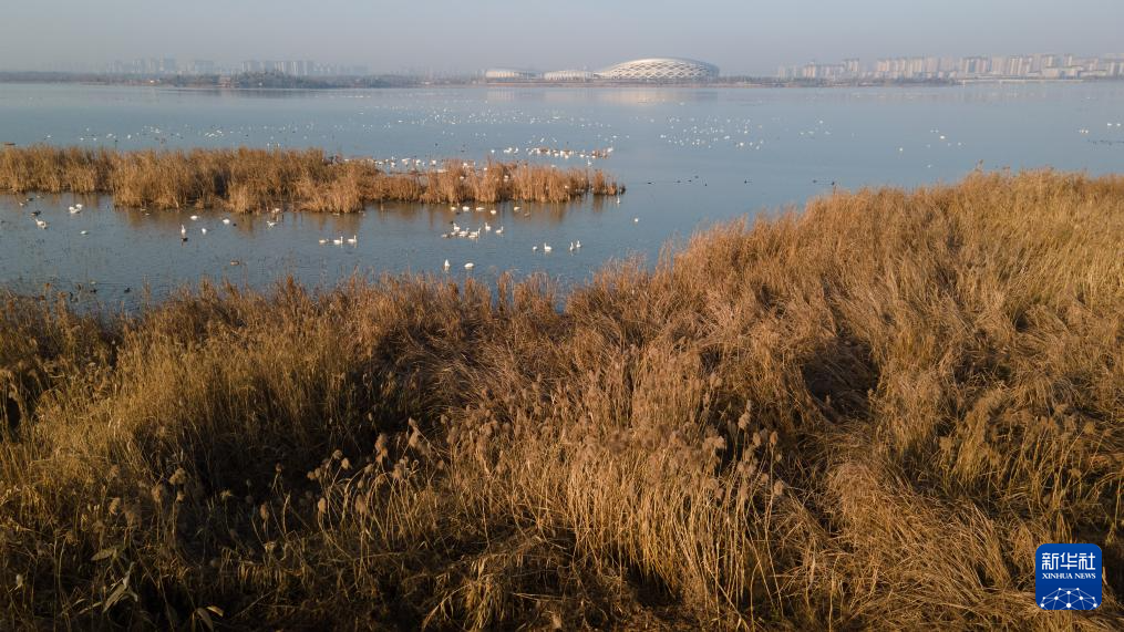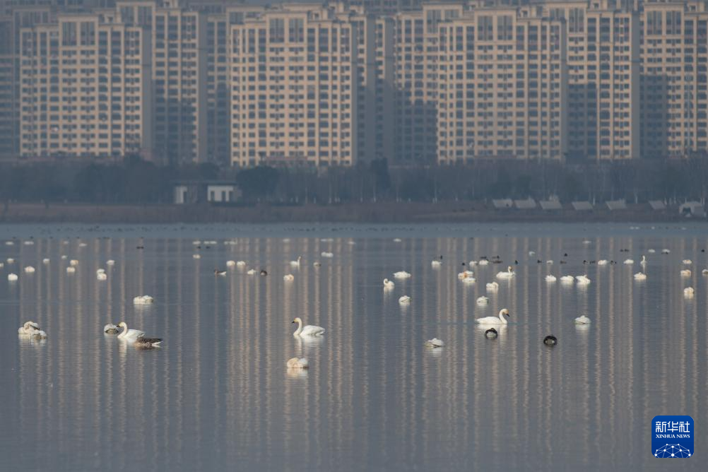 進入冬季,成群的候鳥飛抵安徽省滁州市明湖公園,在此休憩、覓食。明湖公園是一座融合自然景觀與人文景觀的城市公園,優(yōu)良的水質(zhì)、豐茂的水草和豐富的魚蝦資源,使這里逐漸成為天鵝等越冬候鳥和各種鳥類的棲息地。