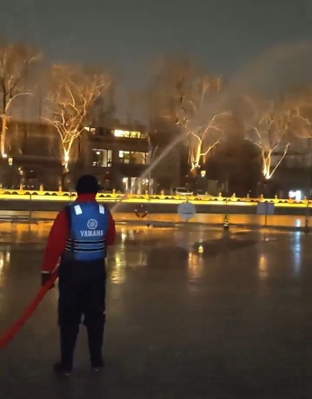 每天18時,什剎海冰場清場結(jié)束,80名工作人員便會準(zhǔn)時上崗,手持專業(yè)工具清理冰沫、推平冰面,開啟長達(dá)2小時的精細(xì)化推冰、澆冰作業(yè)。