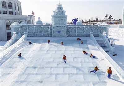 傍晚,長春冰雪新天地繁燈煥彩,最受歡迎的“空中千米雪漂流”上,游人乘著雪圈魚貫而下,風(fēng)聲混著笑聲、叫聲,此起彼伏。
