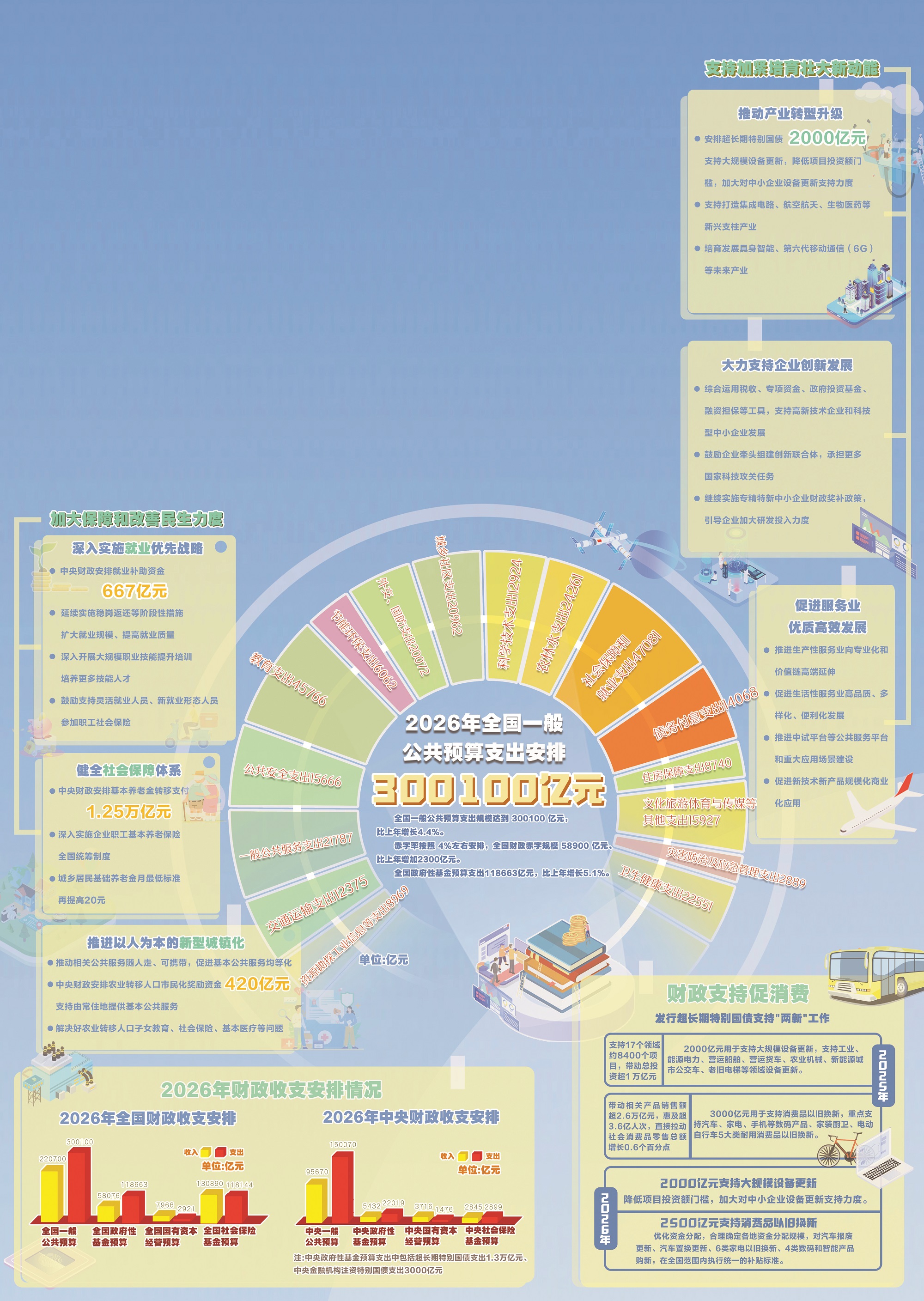 今年中央一般公共預算本級教育支出安排1925億元、增長5%;城鄉(xiāng)居民基本醫(yī)療保險人均財政補助標準再提高24元,達到每人每年724元;同時,加強多層次、多支柱養(yǎng)老保險體系建設;實施好育兒補貼制度……教育、醫(yī)療、住房、生育、養(yǎng)老等民生保障的投入,將全方位減輕就業(yè)群體的負擔。