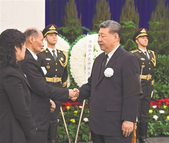 3月10日,宋平同志遺體在北京八寶山革命公墓火化。習(xí)近平、李強、趙樂際、王滬寧、蔡奇、丁薛祥、李希、韓正等前往八寶山送別,胡錦濤送花圈表示哀悼。這是習(xí)近平與宋平親屬握手,表示深切慰問。 新華社記者 謝環(huán)馳 攝