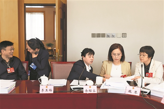 3月10日,四川省代表團(tuán)小組討論結(jié)束后,四川恒通動(dòng)保生物科技有限公司散劑車(chē)間班組長(zhǎng)李玉梅代表(右三)、四川省北川羌族自治縣擂鼓鎮(zhèn)五星村黨支部書(shū)記余紹容代表(右二)和宜賓學(xué)院教授魏琴代表(右一)繼續(xù)交流討論。余紹容代表認(rèn)為,當(dāng)前人工智能正以前所未有的速度重塑生產(chǎn)生活方式,已深度融入千行百業(yè)。
