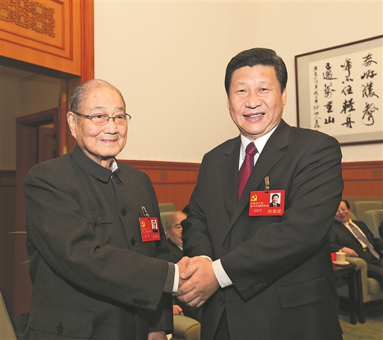 二〇一二年十一月十四日,在黨的十八大閉幕前,習近平同志同宋平同志在一起。新華社發(fā)