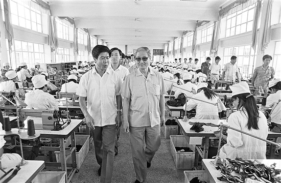 1990年8月14日,宋平同志(右)在山東省威海市文登區(qū)考察。新華社發(fā)