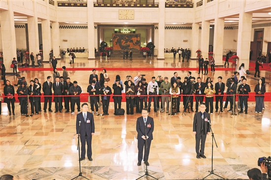 通道上,委員們講述的一個個小故事,折射出國家發(fā)展的大圖景。