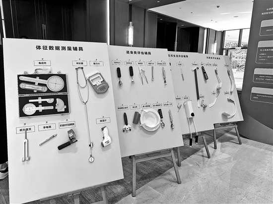 1月13日,在琴澳融合居家社區(qū)養(yǎng)老服務(wù)標(biāo)準(zhǔn)體系發(fā)布會上展示的長者能力評估輔具套裝。本報記者 劉友婷 攝